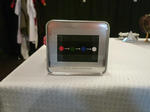 六角形の1面に赤、青、緑、白のカラーシールが貼られており、