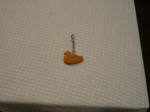 【PEACE】シールが貼られた鳩三郎キーホルダーを発見ます。