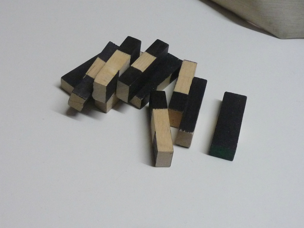 色が塗られた木の棒がたくさん発見されます。