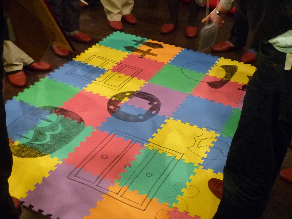 ・キラキラした色がついた三角形が7つ貼ってあるパネル(青緑銀紫銀赤緑)ありました。