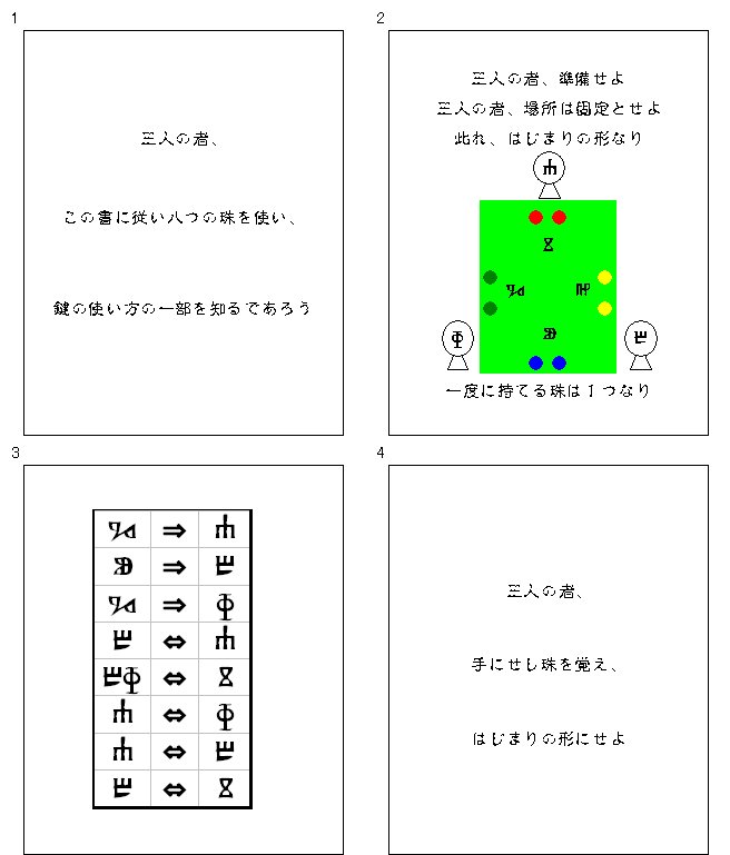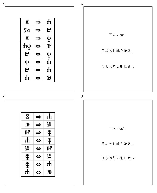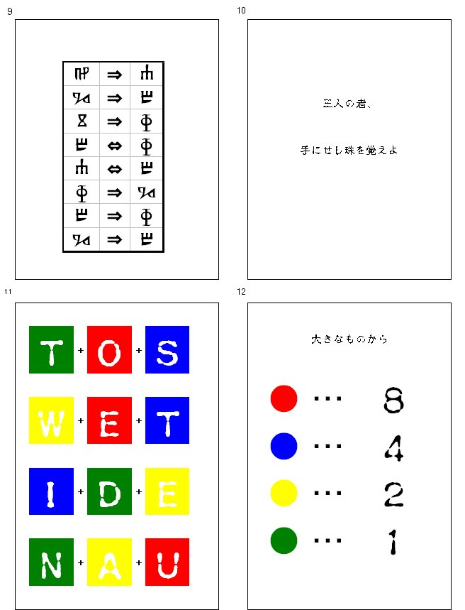 それぞれ、13頁目に記された順(三角形の上から時計回り)に読むと、