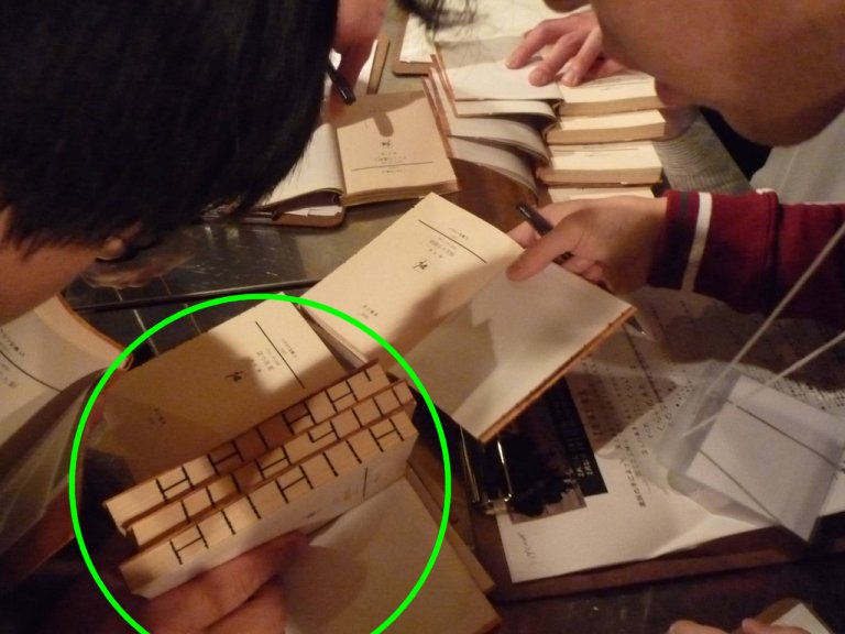 本の側面には、謎の線(画像上の丸)があり、本のページをめくると、