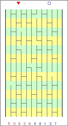 あとは、あみだが途中で途切れずに最後までつながるものを探すと、