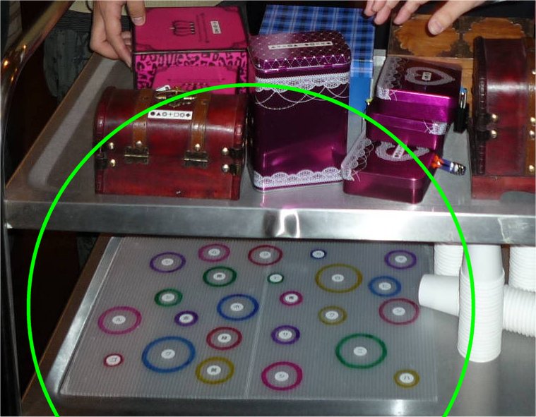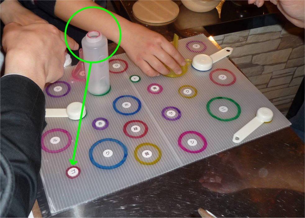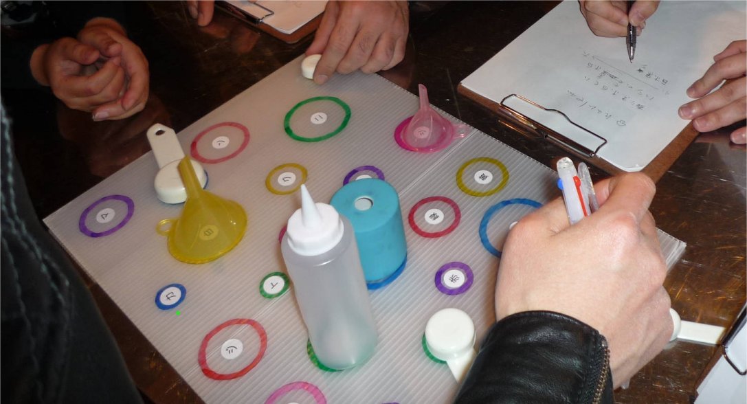 色の付いた丸と文字がたくさん書いたボードがありました。