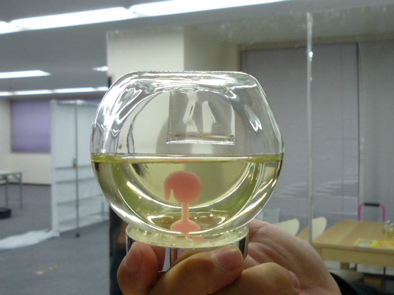 これはアクリル板を加工してあり、中に入っている液体は油です。
