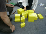 黄色い箱それぞれの重さを測れば…すべて重さが異なります。