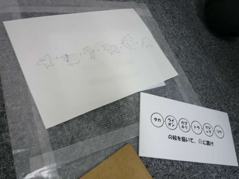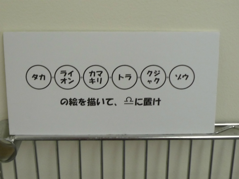 「タカ ライオン カマキリ トラ クジャク ゾウ の絵を描いて ♎ に置け」