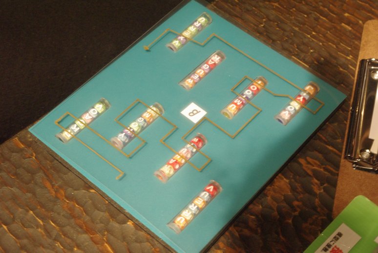 これに配線シートをかぶせて、配線の通りに文字をたどれば…って、