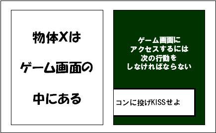ゲーム画面にアクセスするには次の行動をしなければならない。「コンに投げKISSせよ」「コンに投げKISS」?はて?