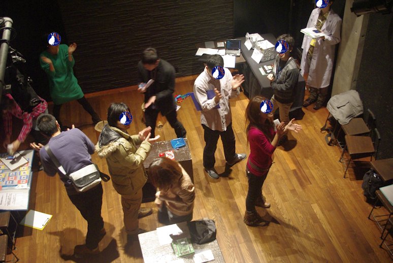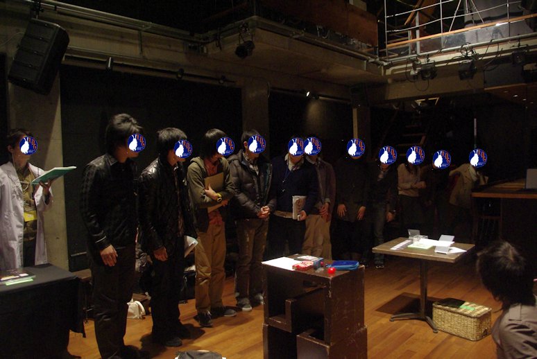 皆さんキチンとやってくださいましたが、製作者内のテストプレイでは、壁にもたれる、人の肩をつかむなどのていたらくぶり(笑)