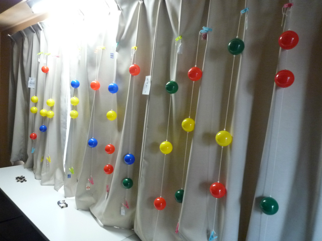 ・間にボールがついた紐がたくさん