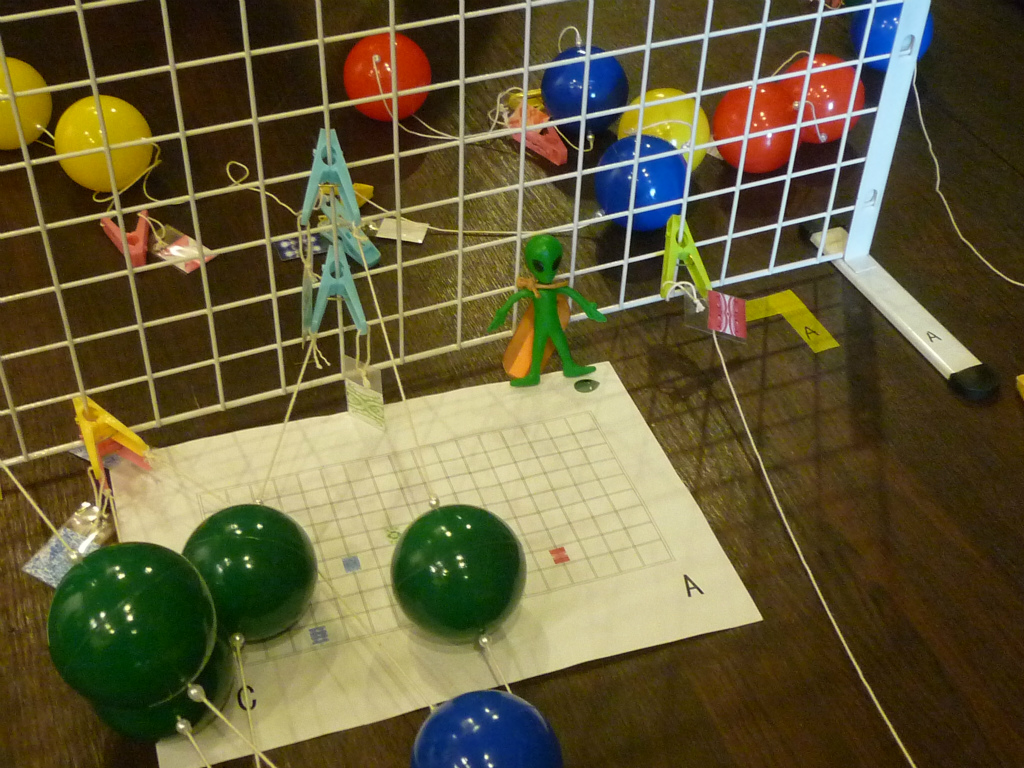 4枚の紙の指示通りにクリップを接続し、玉を上から見ると「ESP」と読めました。