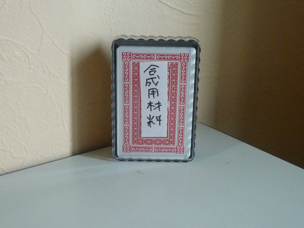 「合成用材料」と書かれたトランプセットと