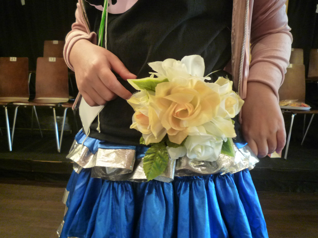 これに従い赤端末と踊ると、赤端末が身に着けていた花がもらえます。
