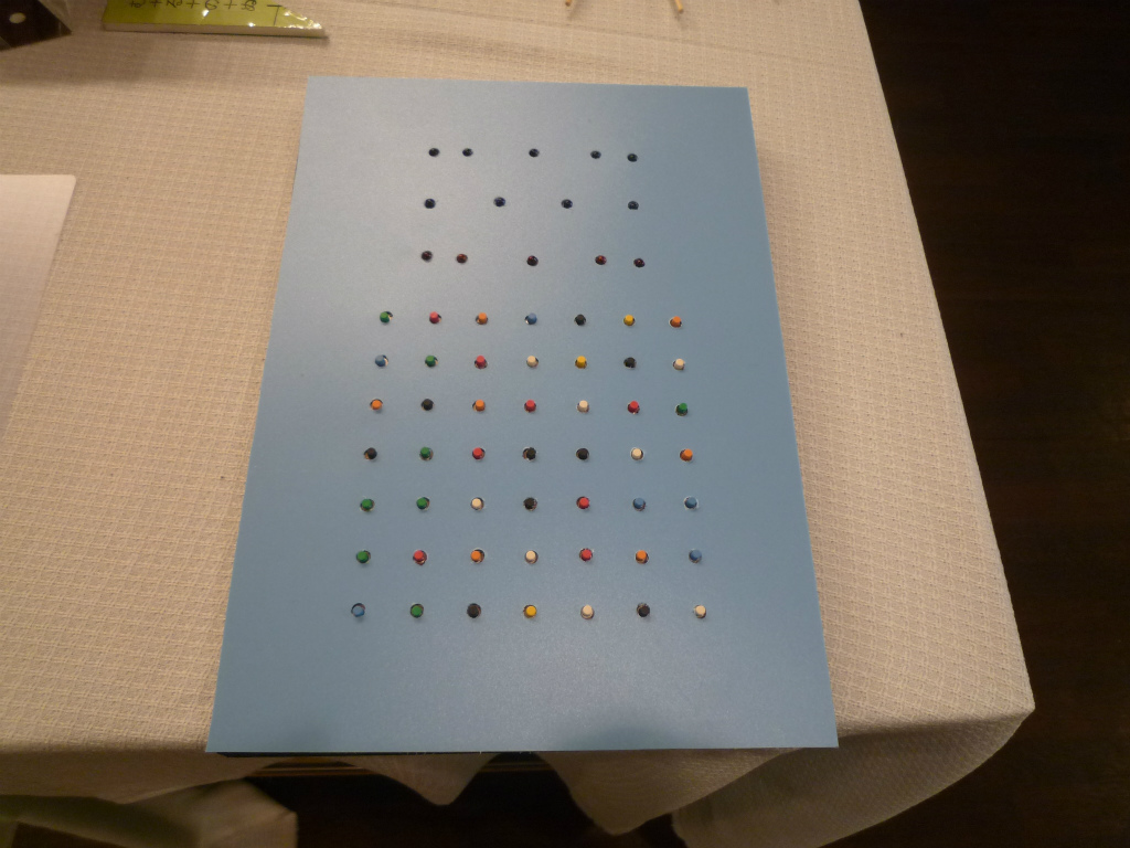 地球には7*7=49個のボタンと、14個のLEDがついたボードがありました。