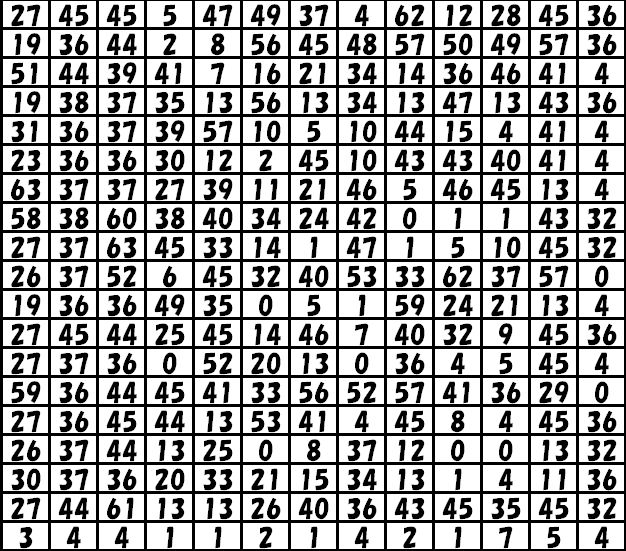 数字表上、32以上の位置を塗り、数字表からは32を引く、